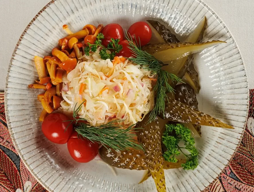 «Белорусский погребок» – это ассорти солений-маринадов в домашнем стиле. “Малотиражного” домашнего приготовления, настоящая гордость заведения. Весной 2025 года мы в очередной раз обновили состав этого сета. Теперь в него входят: Домашние солёные огурцы и томаты, опята, и квашеная капуста. Всё своё, родное! Для тех, кто знает толк в хорошей закуске. Например, к нашим фирменным настойкам.