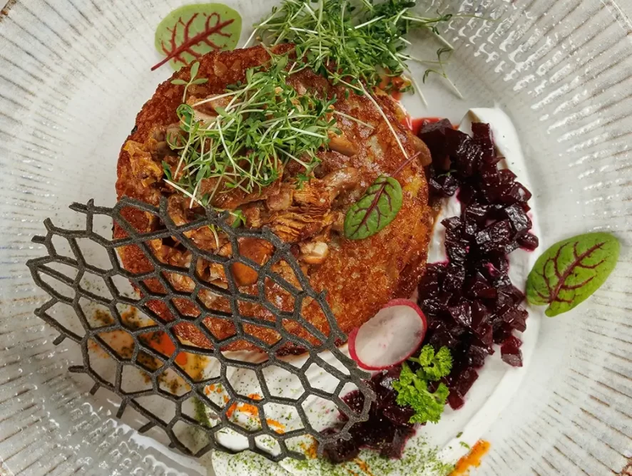Драники с тушеной квашеной капустой и лисичками