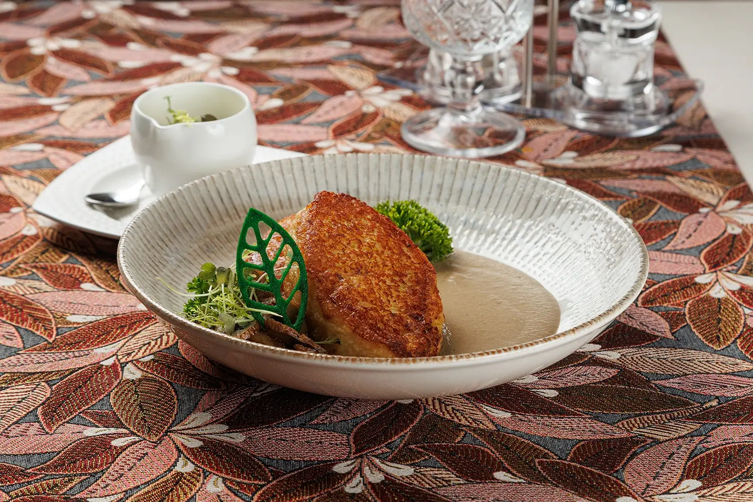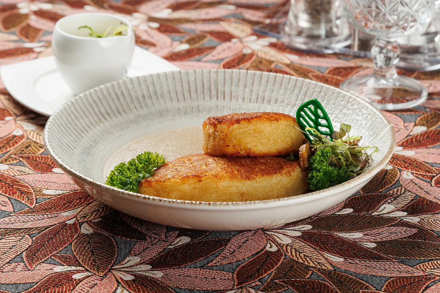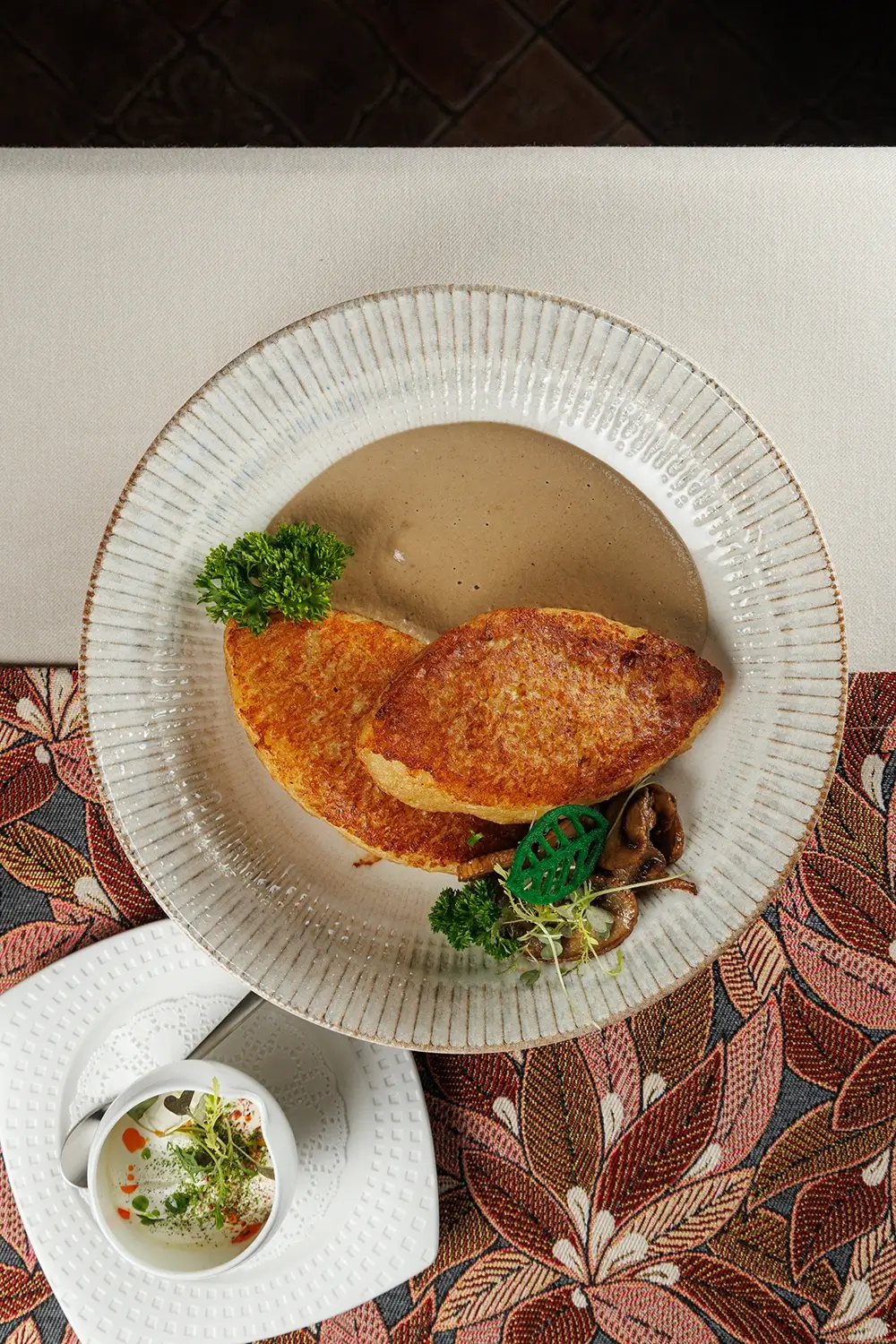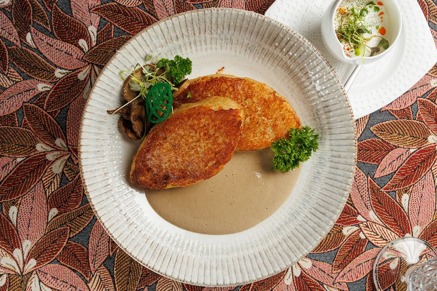Колдуны “Вилейские “с грибным соусом и сметаной – блюдо, которое мы готовим с самого открытия ресторана. То есть с июля 2011 г. Изначально словом «колдуны» называли белорусско-литовский аналог пельменей и вареников. Заимствованный несколько веков назад из татарской кухни. И гораздо позже, в середине ХХ века, исходя из концептуального сходства, так в народе стали называть и большие картофельные клёцки («цеппелины»), и фаршированные драники. (Иначе говоря, картофельные оладьи). Фаршировать их можно рубленым мясом, шкварками, жареными грибами, иногда – творогом. О многозначности названия блюда “колдуны” в белорусской кухне – читайте подробную статью на нашем сайте.