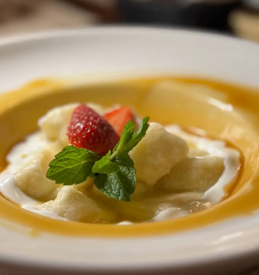 «Ленивые» вареники со сметаной и солёной карамелью / “Lazy” soft cheese dumplings with sour cream and