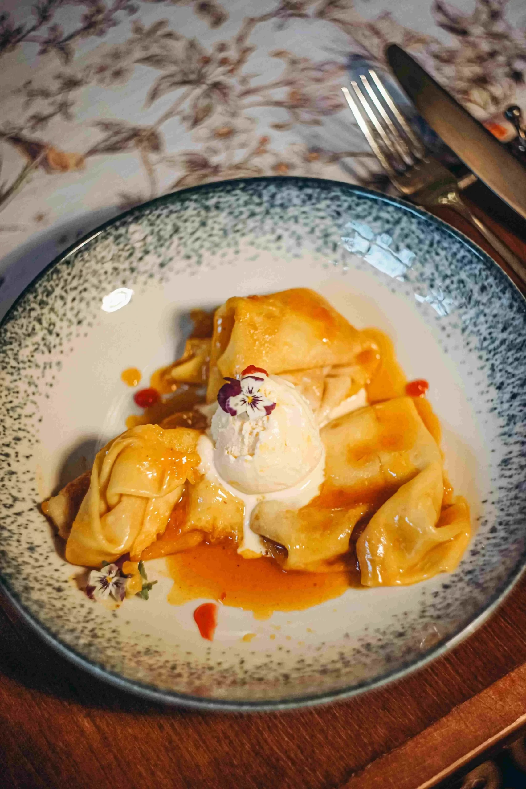 Блинчики подаются с домашним мороженым из топлёного молока, напоминающим по вкусу нежную ряженку. Приходите попробовать!