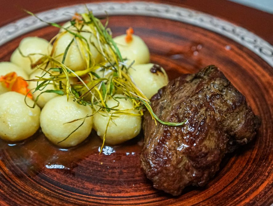 Стейк “Магнатский” с гарниром на выбор. (С картофельными клёцками, или