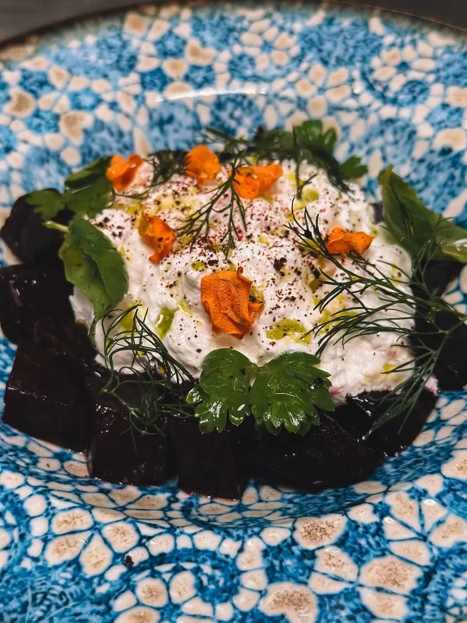 Свекольные ломтики с муссом из домашнего сливочного сыра – наше сезонное блюдо осени 2023 г.