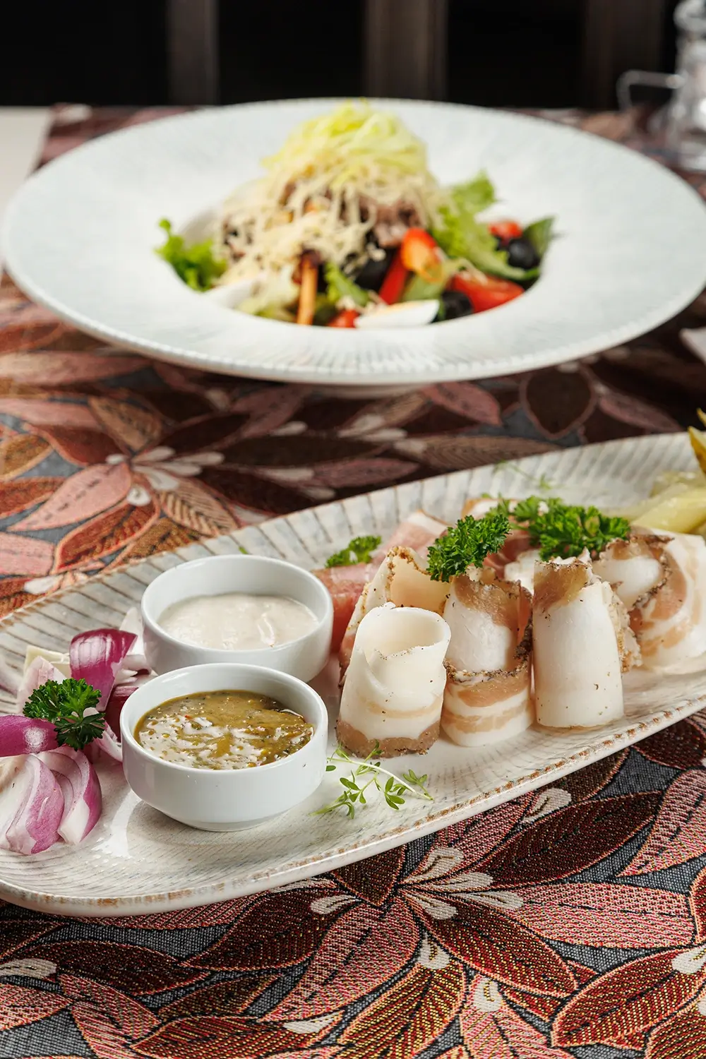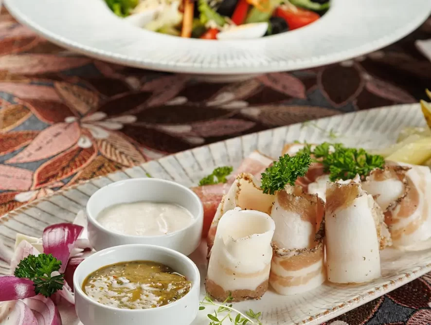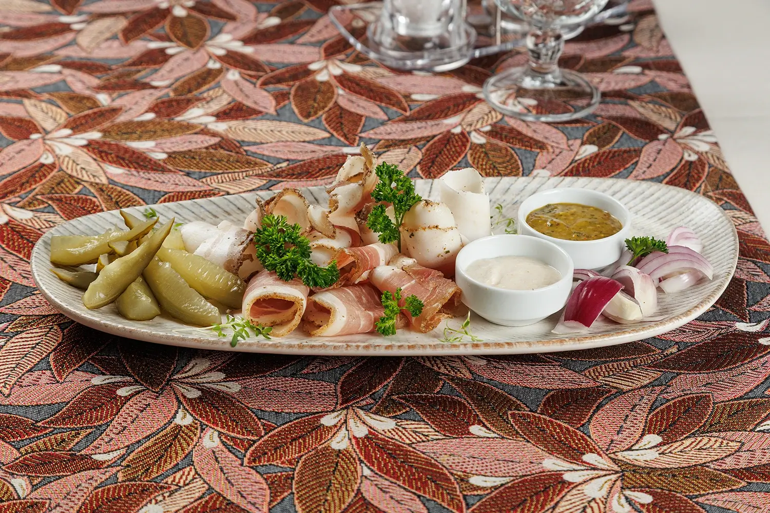«Тарелка к хреновухе»: Этот Сет холодных закусок мы специально разработали под нашу самую популярную настойку, «хреновуху». Впрочем, можно с успехом сочетать его и с другими нашими фирменными напитками 🙂 В состав набора закусок входят: свиное сало, грудинка, солёные бочковые огурцы. А также домашняя аджика, хлеб, ломтики красного лука. Давно проверено, порции хватает на двоих, а то и на троих 🙂