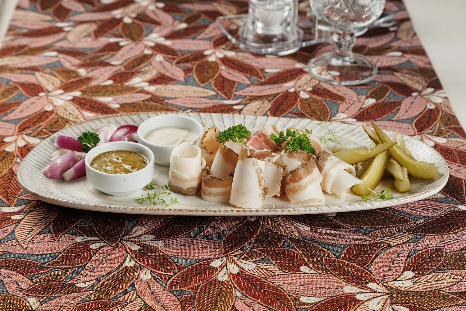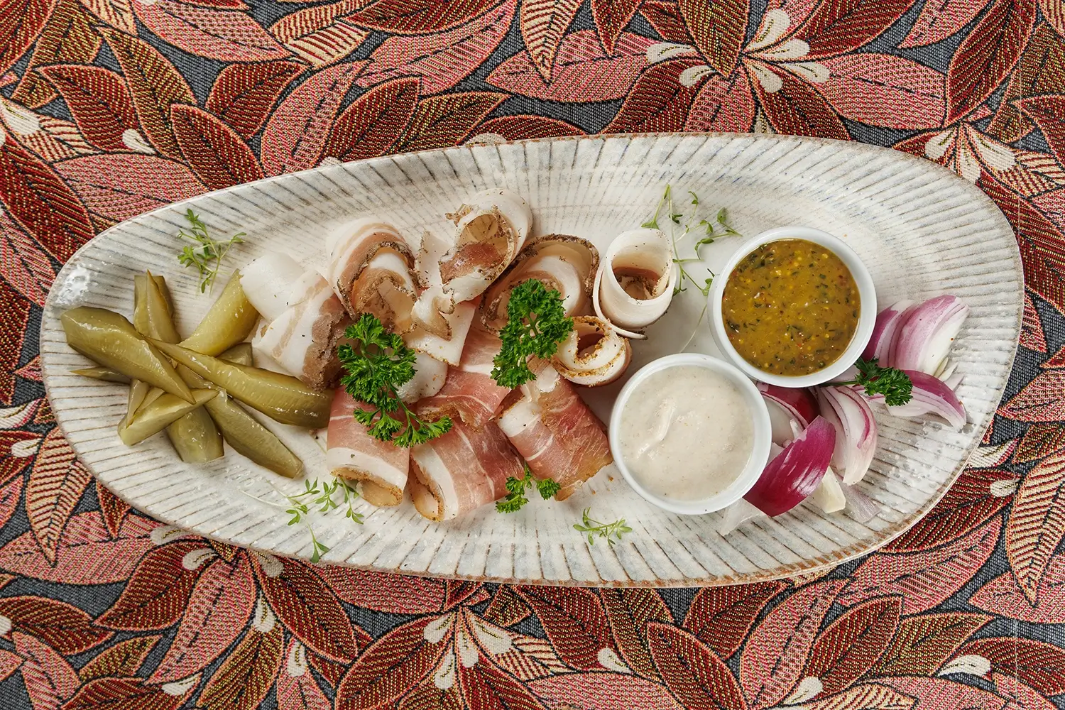 Эта позиция в нашем меню постоянно присутствует с самого открытия ресторана. (Как, собственно, и сама хреновуха). То есть, с июля 2011 г. И все эти годы мы сами готовим все составляющие тарелки. Солим сало и огурцы, приготавливаем аджику… В общем, делаем всё как для себя, как дома. И поэтому очень гордимся этой, вроде бы нехитрой, «простецкой», закуской.
