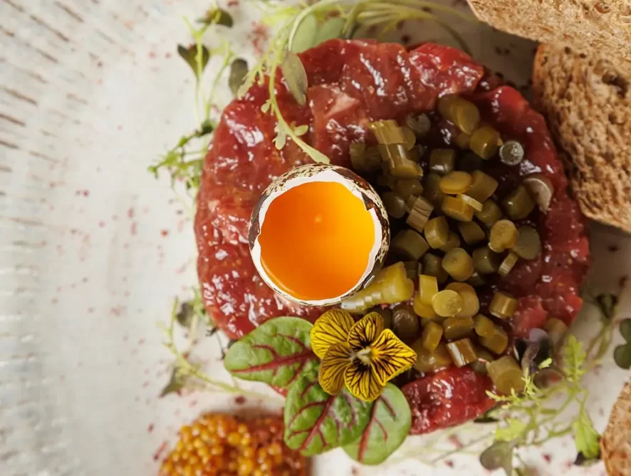 Тартар из говядины с черемшой, или татарский бифштекс – наше новое блюдо, впервые появившееся в меню весной 2022 г. Сначала в сезонном, а затем, практически сразу, и в основном. Уж больно хорошо себя сразу же зарекомендовало.