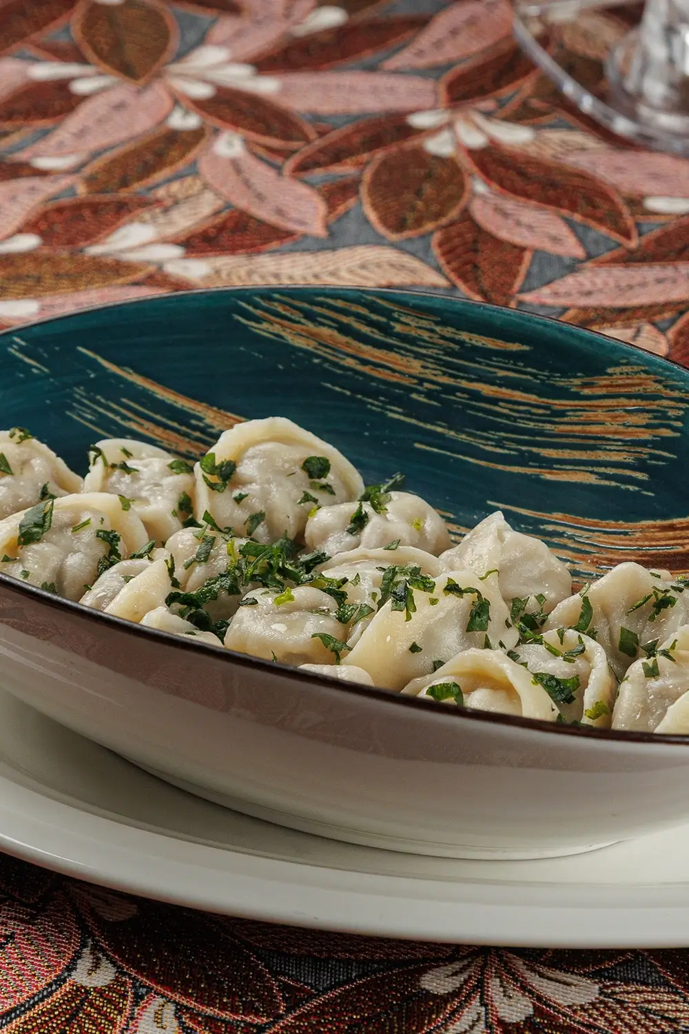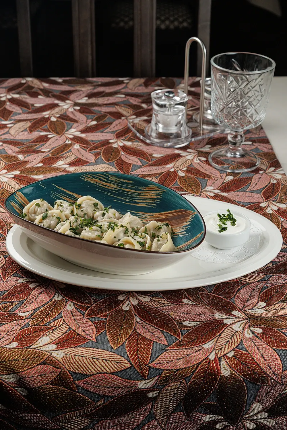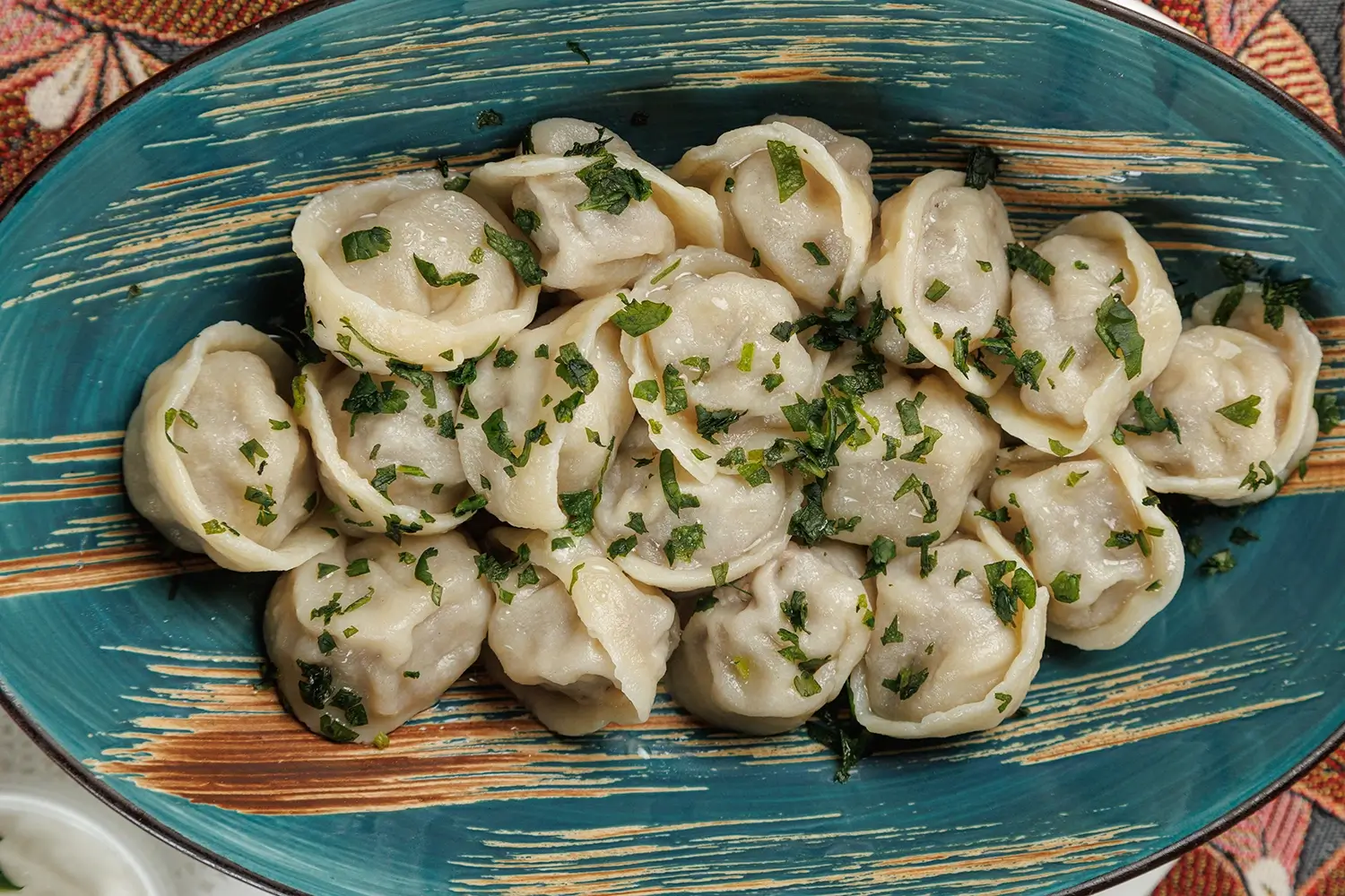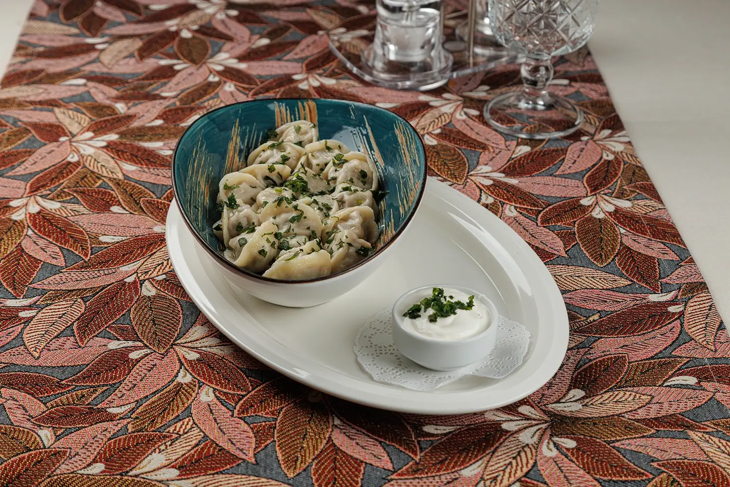 Татарские колдуны с бараниной, кинзой и чесночно-сметанным соусом