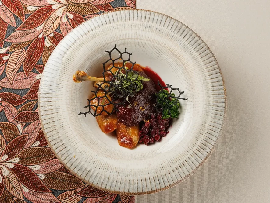 Блюда из утки в советское время почему-то совсем не ассоциировались с белорусской кухней. Но нам очень хочется отойти от этого абсурдного и обидного стереотипа. Утка «Важны Качар» сочетает французский (в основном блюде) и литвинский (в гарнире) подходы. Так что это благородное блюдо – пример столь характерного для нашего времени стиля «фьюджн». Ведь печёные или томлёные кислые яблоки, как и тушёные «бурачки» (свёкла), и маринованные рыжики – традиционный гарнир к утке в наших краях. А, ну и кстати, травы и специи в рецептуре этого блюда, состав которых держим в секрете – также весьма традиционны для Беларуси и Литвы. Результат, надеемся, произведёт на Вас достойное впечатление. Важная птица – для важных гостей! 🙂
