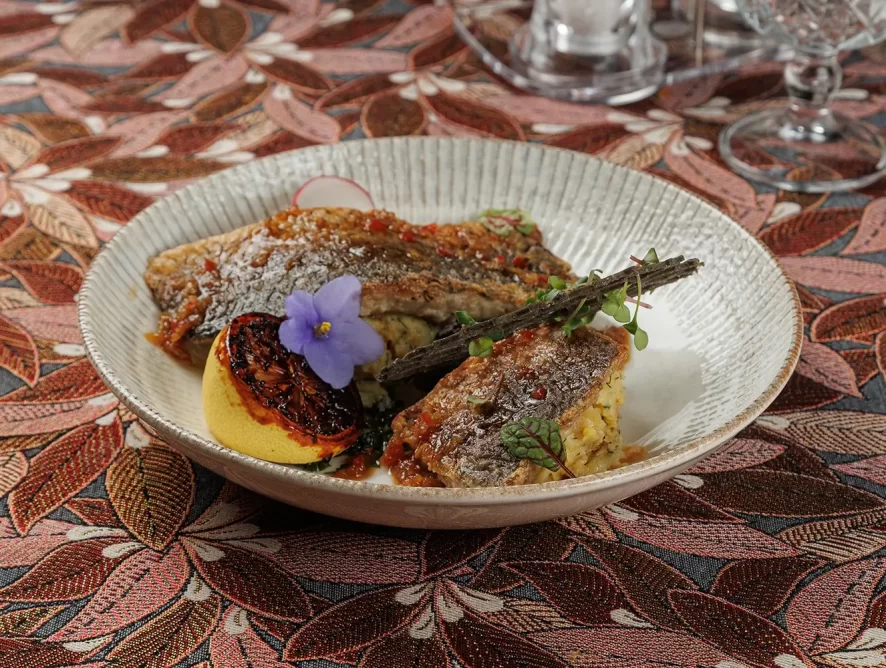 Жареный карп с толчёным картофелем и сальсой из овощей. Аналогичные блюда бывали в нашем меню уже много раз. А конкретно такой вариант – усовершенствованный вариант весны 2025 г.