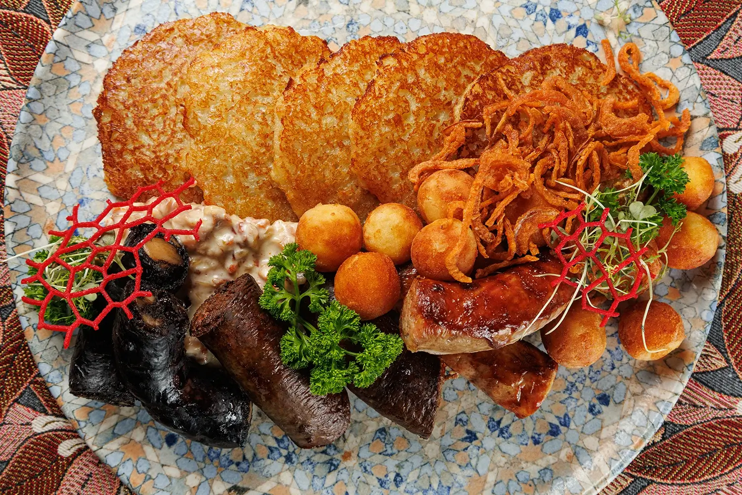Основа нашего меню остаётся стабильной уже много лет, хотя мы постоянно тестируем новые блюда. Большинство из них не закрепляются «в основном составе», лишь наиболее удачные новинки. Основные источники нашего вдохновения – традиционная крестьянская кухня, «литвинская» кухня шляхты и горожан Беларуси и Восточной Литвы, а также самые известные и любимые народом блюда советского периода нашей истории.